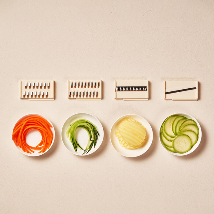 1. Multipurpose Blades: Vegetable Chopper Slicer contains 3 different sizes of fruit chopper blades interchangeable blades for thick/thin slicing, dicing or chunking, shredding/shredding, thick or thin, grinding and chopping.