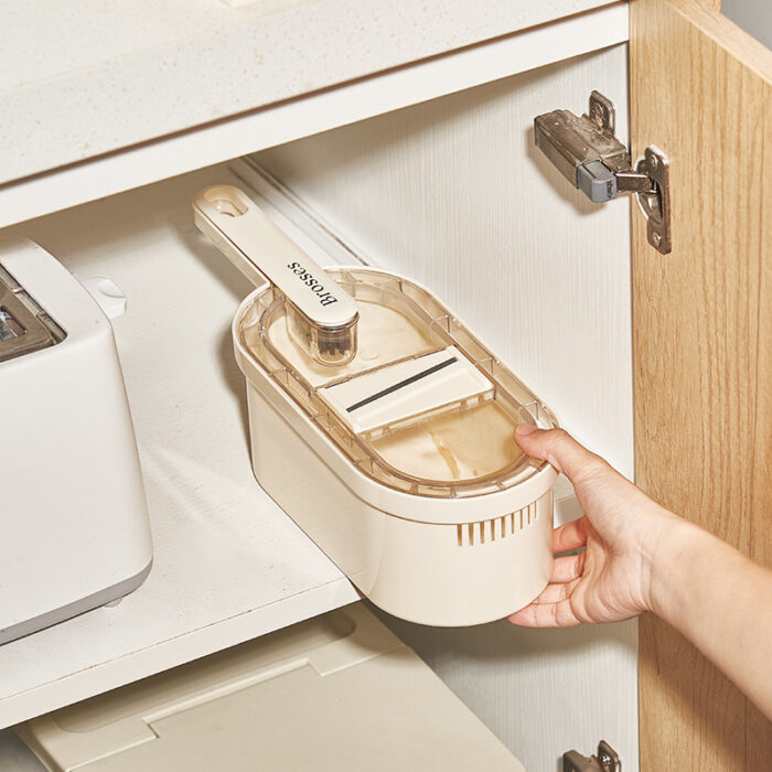 2. Save Time & Space: Free up countertop space with bottom container. The built-in cutting lid allows you to cut food directly into the large food container, no more need for a knife and cutting board. This also prevent food from sliding off while slicing.